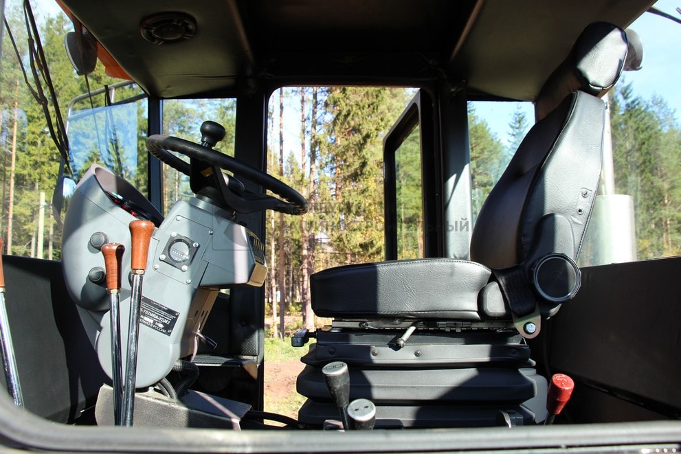 Кабина с защитной конструкцией (каркасом безопасности), защищающим оператора при опрокидывании (ROPS) и от падающих предметов (FOPS), ГОСТ Р ИСО 3449-2009. Отопитель, увеличенная обзорность, автомагнитола. |