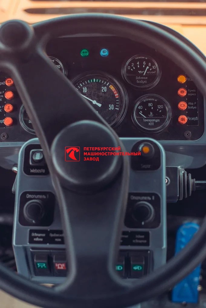 Кабина с панорамным (сферическим) остеклением, с защитной конструкцией (каркасом безопасности), защищающим оператора при опрокидывании (ROPS) и от падающих предметов (FOPS), ГОСТ Р ИСО 3449-2009. Отопитель, увеличенная остекленность, автомагнитола. |