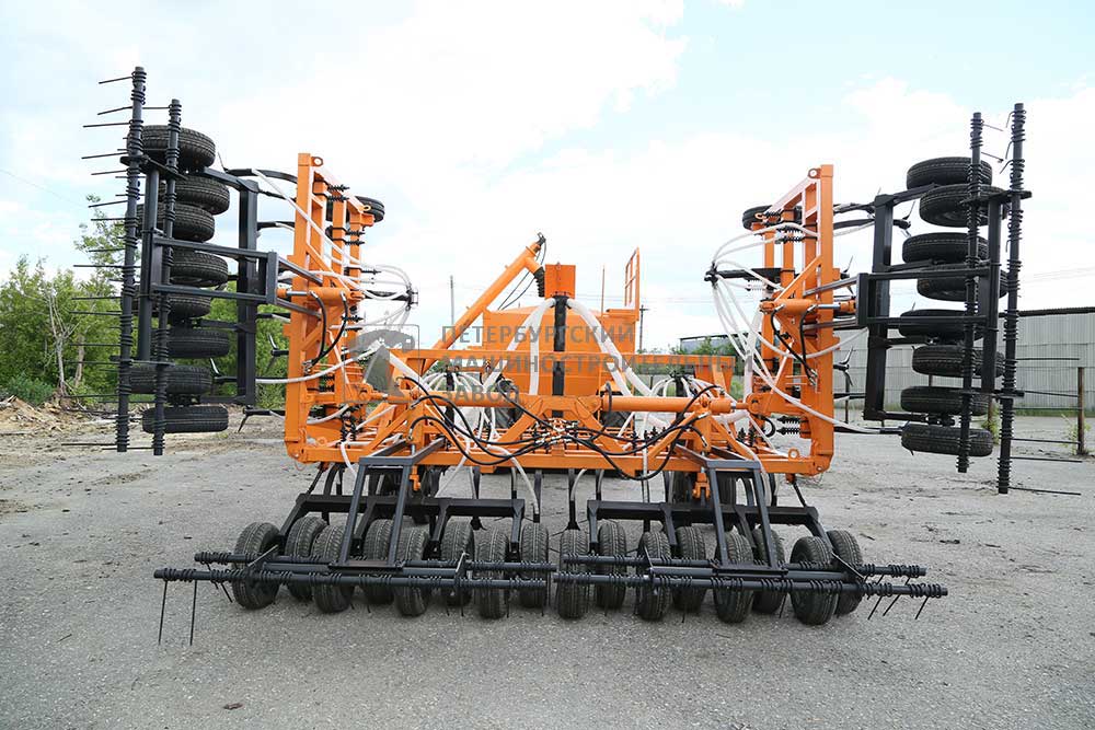 Стрельчатые лапы-сошники обрабатывают почву и формируют семенное ложе. Регулировка глубины производится при помощи изменения высоты передних опорных колес и перестановки регулировочных клипс на задних подъемных гидроцилиндрах. Семена и удобрения из бункера поступают на катушку дозатора, а затем в пневмопровод. Расход посевного материала регулируется при помощи регулировочных винтов. Под воздействием воздушного потока от вентилятора, посевной материал поступает в распределитель, а затем по индивидуальным шлангам попадает к лапам-сошникам. После высева, катки прикатывают полосу посева. пружинная борона заделывает полосу посева мульчированным слоем. Балансирная подвеска опорно-прикатывающего устройства обеспечивает копирование самого сложного рельефа поля. Для загрузки семян и удобрений используется шнек-загрузчик посевного комплекса. Складывание и перевод в транспортное положение производится гидроцилиндрами комплекса от гидросистемы трактора. Вращение вентилятора пневматической системы посевного комплекса обеспечивается двумя способами: Автономным двигателем внутреннего сгорания Гидромотором от гидросистемы трактора.